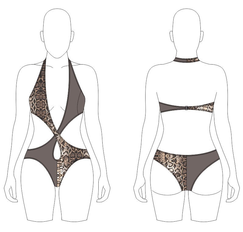 If you're looking for a block for larger busts, with two very supportive curved darts then this is for you. It can be used independantly to create stringed triangle and halter neck bikini tops or as a component block for large busts when working with other blocks. For example you might want to use a double darted big bust halter connected to an 8% one piece at the Empire line.